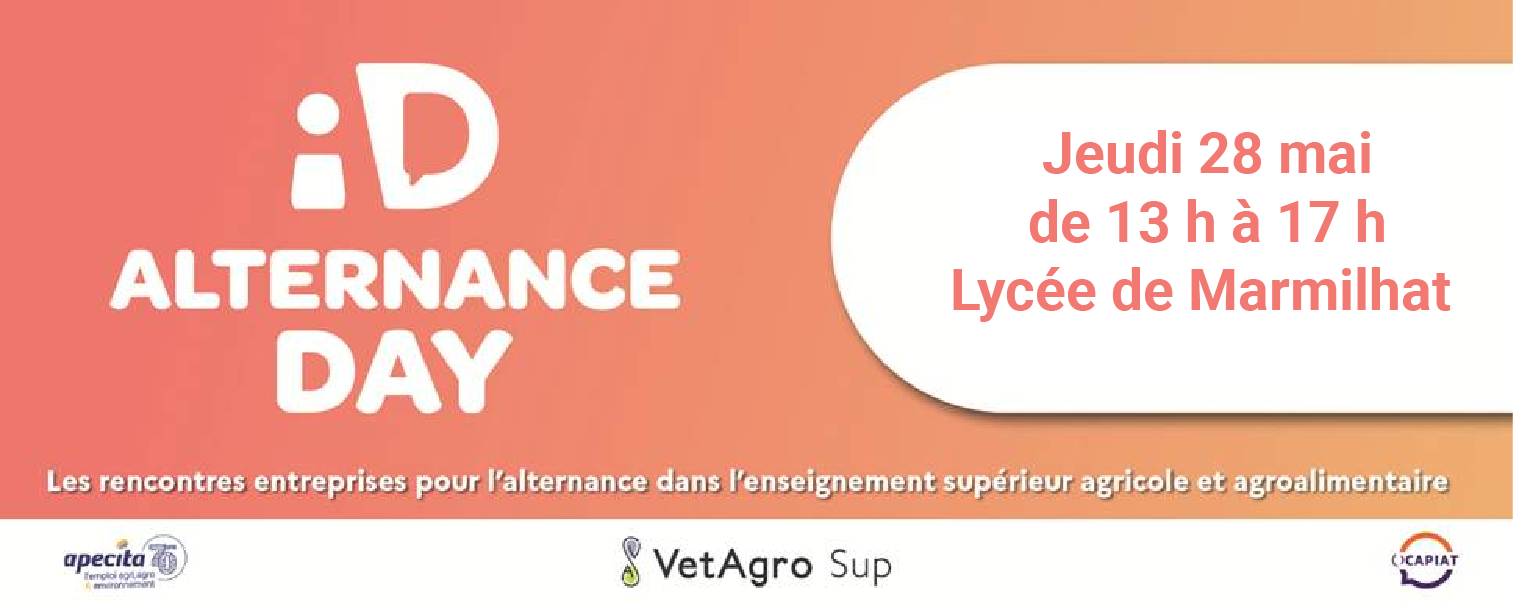 « Alternance Day : Agri-Agro » revient pour la 3ème année, le Jeudi 28 mai 2026 de 13 h à 17 h au Lycée de Marmilhat (63).